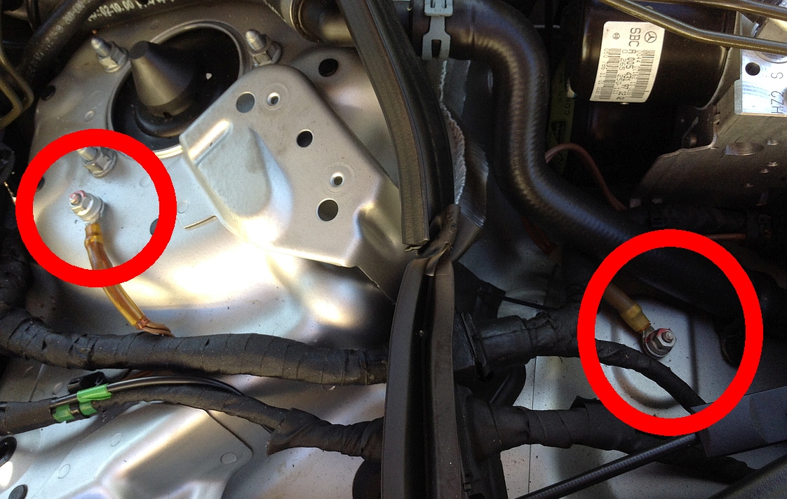One thing I did find though, under the bonnet are two lots of earth wires bolted to the wheel arch (circled red in photo opposite). I undid these, cleaned them and then refastened. It made a noticeable difference. By cleaning and refastening these the constant changing from 1st to 2nd at speeds below 10-12 km/h has disappeared.