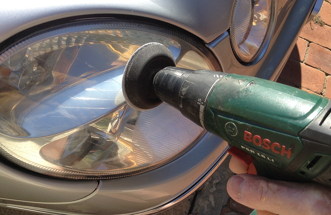 I also purchased a Mothers brand headlamp polishing kit from Mark at Battery World, another club sponsor, as the covers had clouded. It took some work but they are now nice and clear. If you have an electric drill you can use the rubbing pads which go from 800 to1500 grit to be followed by a plastic polish applied with a sponge applicator.
