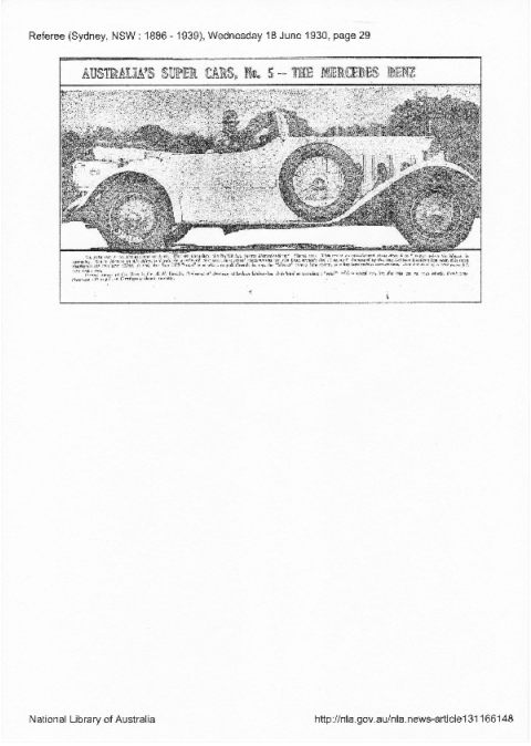 So reported Sydney’s paper The Referee (18 June 1930) which sported a grainy photo of the Professor in his 1929 Mercedes-Benz.
